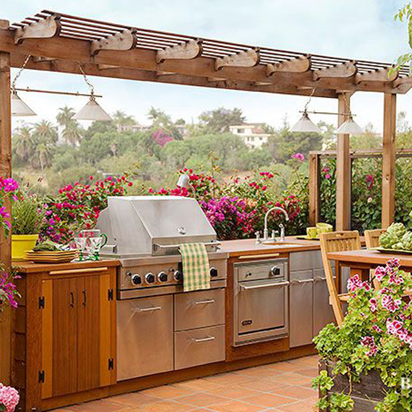 گریل و سینک روشویی: استفاده از گریل و سینک روشویی در دکوراسیون و دیزاین فضای بیرون خانه و حیاط، امکان پخت و پز و شستشو را در فضای باز فراهم کرده و تجربه آشپزی در طبیعت را لذتبخشتر میکند. علاوه بر این، این امکانات به کارآمدی و جذابیت فضای بیرونی افزوده و محیطی مناسب برای برگزاری مهمانیها و تجمعات خانوادگی ایجاد میکنند.