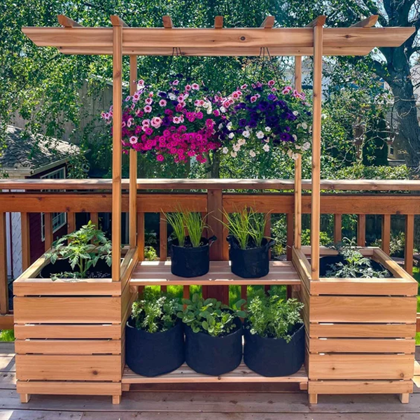 فلاور باکس: استفاده از فلاور باکس در فضای بیرون خانه و حیاط، امکان ایجاد باغچههای کوچک و زیبا در محیطهای محدود را فراهم میکند و به تنوع و زیبایی بصری محیط کمک میکند. علاوه بر این، فلاور باکسها میتوانند به بهبود کیفیت هوا و ایجاد فضایی دلپذیر برای استراحت و تفریح در فضای باز کمک کنند.