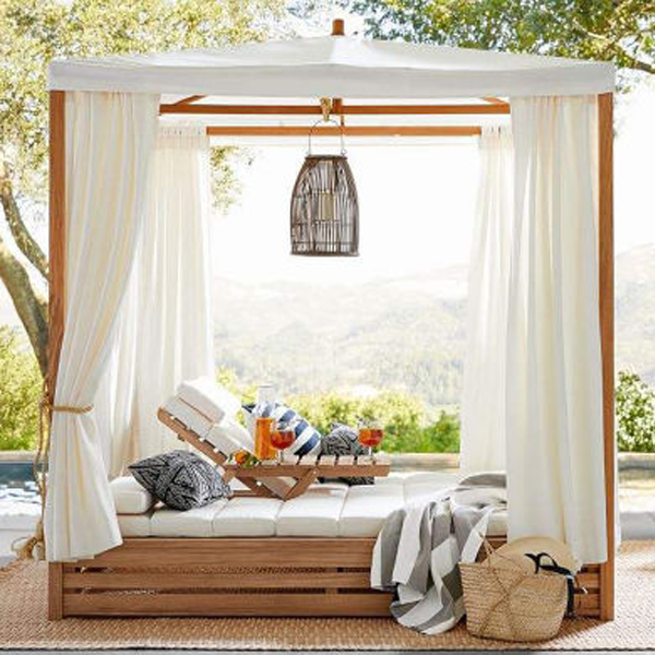 تخت خواب فضای بیرون: استفاده از تخت خواب فضای بیرون در دکوراسیون فضای باز خانه و حیاط، امکان استراحت و لذت بردن از هوای تازه و مناظر طبیعی را فراهم میکند و تجربهای متفاوت و آرامشبخش ارایه میدهد. علاوه بر این، این تختها به زیبایی و جذابیت فضای بیرونی افزوده و محیطی راحت و دلپذیر برای تفریح و آرامش ایجاد میکنند.