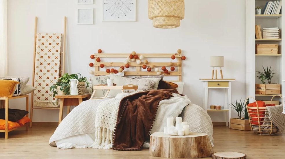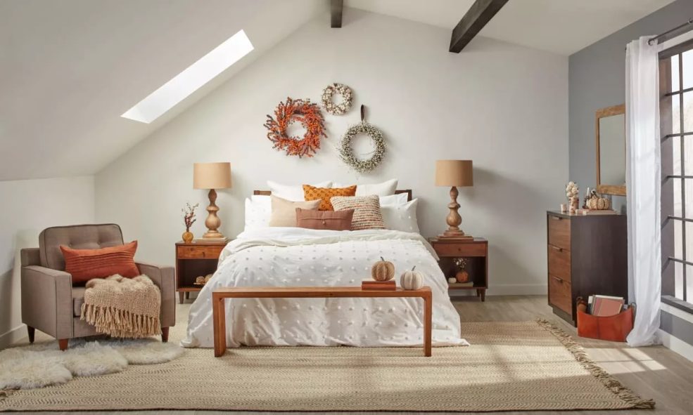 برای پائیزی کردن دکور اتاق خواب باید از رنگ هایی که نماد پاییز هستند کمک بگیریم. رنگهایی مثل نارنجی، زرد، خردلی ، قرمز، اخرایی و قهوه‌ای رنگ هایی هستند که در پاییز در طبیعت بسیار مشاهده می شود. چه چیزی بهتر از اینکه شما از طبیعت الهام بگیرید و آن را به اتاق خواب خود دعوت کنید و از آرامش بیشتر آن لذت ببرید