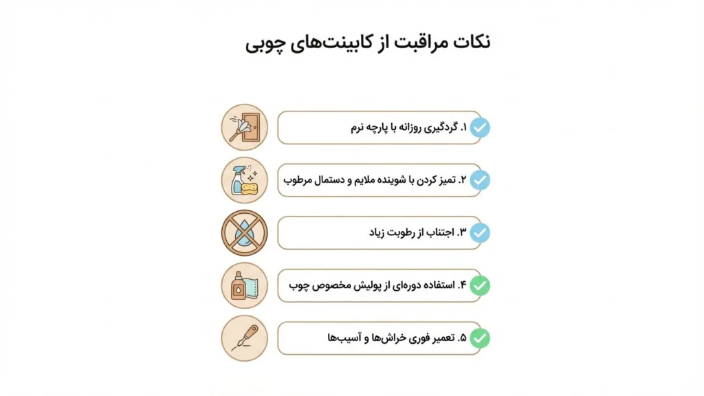 - استفاده از اکسسوریهای نظمدهنده داخل کابینت.