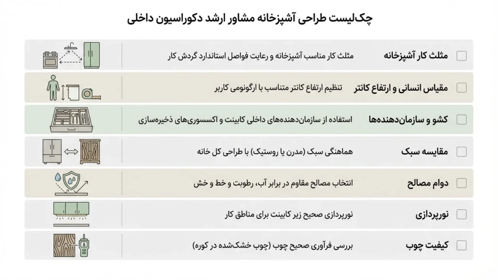 چکلیست مشاور ارشد برای دیزاین داخلی آشپزخانه