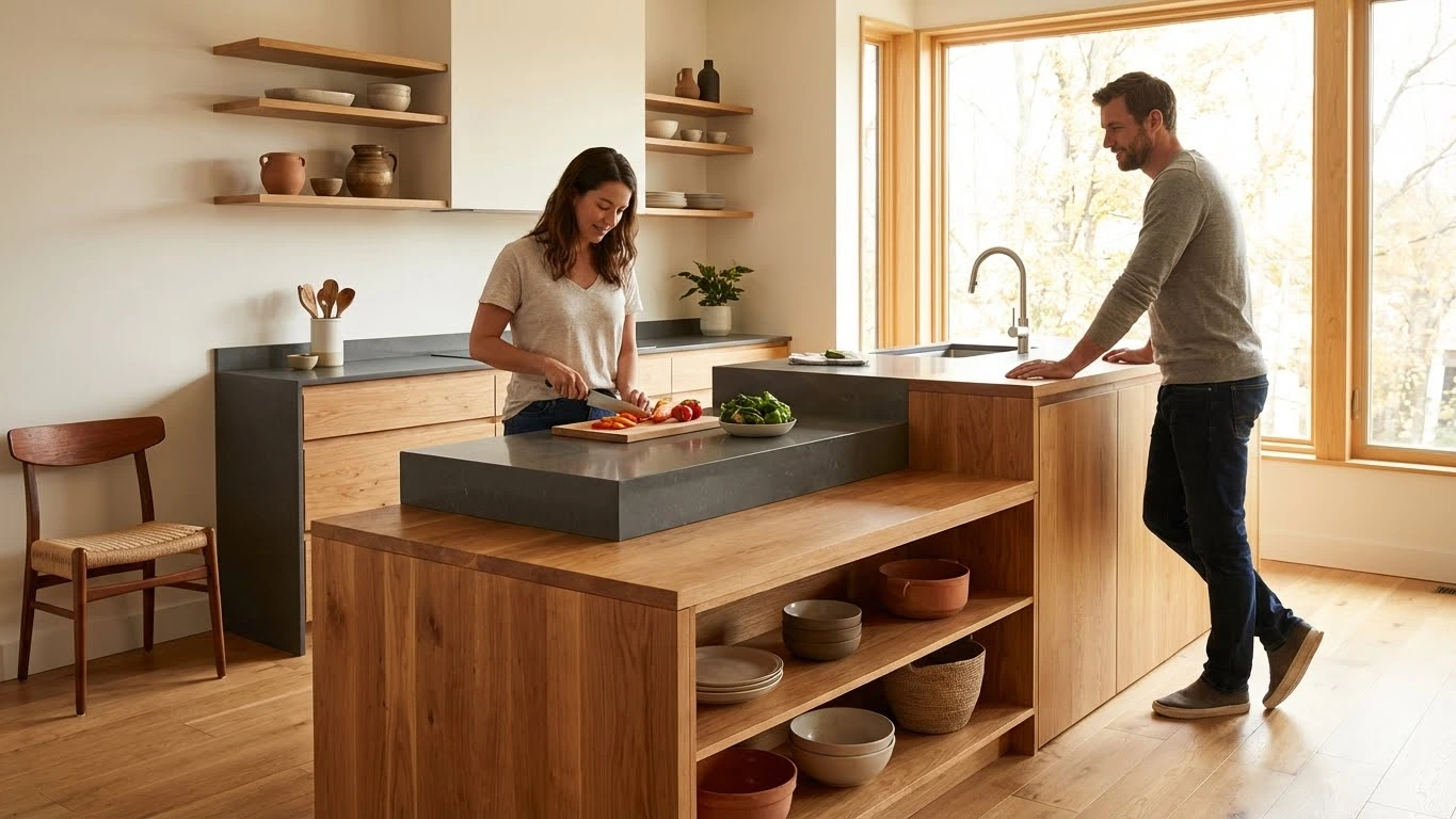 اگر هدف ماندگاری بلندمدت و اصالت در طراحی داخلی آشپزخانه مدرن است، چوب طبیعی علیرغم قیمت بالاتر، بهترین گزینه است.