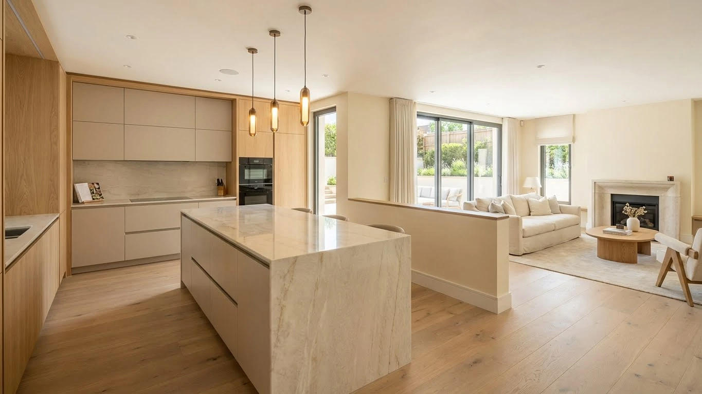 - کابینت و مبلمان: تمرکز باید بر روی مواد باشد، نه طرحهای پیچیده. از کابینتهای تمام چوب با رنگهای طبیعی استفاده میشود.