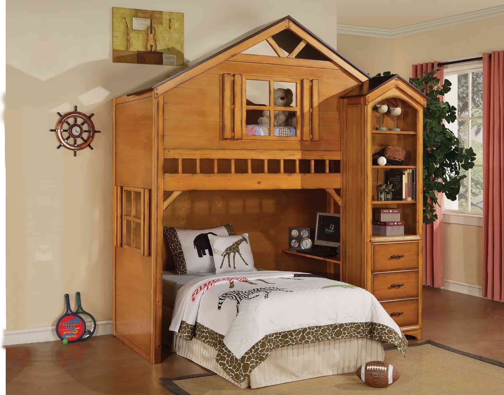 کلبه چوبی کودک لزوما نباید یک کلبه واقعی باشد. کودکان دارای قوه تخیل خارق العاده ای هستند که می توانند به هر جایی به راحتی در عالم خیال سفر کنند. برای همین کافی است یکی از وسایل اتاق آنها را به صورتی بسازید که پرورش دهنده این خلاقیت و تخیل بی نظیر باشد. این وسیله می تواند تخت کودک باشد که حجم زیادی از اتاق را اشغال می کند و چه بهتر که دو کاربرد داشته باشد و هم به عنوان تخت چوبی کودکو هم به عنوان محل آسایش و استراحت کودک در نظر گرفته شود. این کار می تواند باعث شود که کودک به راحتی در اتاق خود احساس خوشایند تر یداشته باشد و با این حس امنیت به راحتی می توانید او را به سمت مستقل شدن و خوابیدن اتاق خودش هدایت کنید. ایجاد یک فضای دوست داشتنی در فضای اتاق کودک یکی از بهترین کارهایی است که برای آرامش خاطر و سلامت روان فرزندتان می توانید انجام دهید.