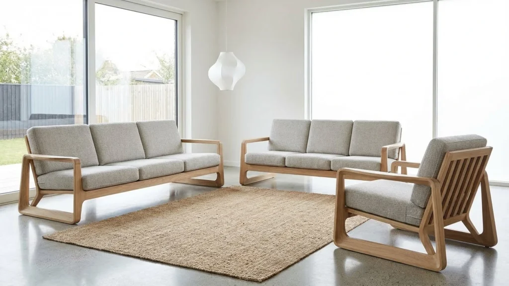 • چوب مناسب برای نما (پایه‌ها و دسته‌ها): در مدل‌های مبل دسته چوبی مینیمال که چوب به عنوان بخشی از زیبایی این سبک نقش دارد، باید از چوب‌های سخت‌تر و زیباتری استفاده شود: