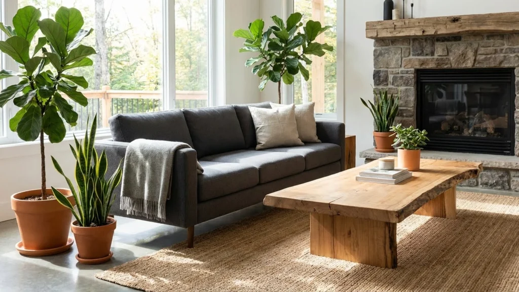 ترکیب مبل مینیمال با دکوراسیون روستیک و چوبی