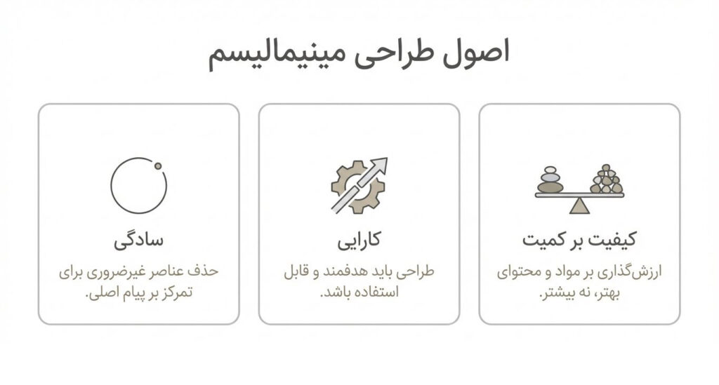 سبک مینیمال در هسته خود، بر اصل «کمتر، بیشتر است» استوار است و نه تنها به حذف اشیای اضافی، بلکه به ارتقاء کیفیت و کارایی آن چیزی که در فضا باقی می‌ماند، تأکید دارد.