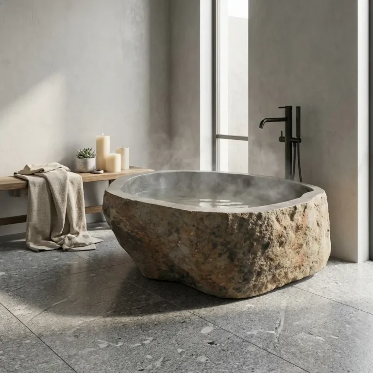 دراز کشیدن در یک وان که صددرصد ماده سازنده آن از طبیعت است، حسی فوق العاده است که تنها با وان سنگی رودخانه ای به دست می آید.