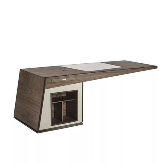 | گردو (Walnut) | لوکسترین ظاهر، بافت تیره و متراکم، مقاومت استثنایی در برابر سایش. | قیمت بالا، وزن سنگین، نیاز به فرآوری تخصصی برای جلوگیری از تغییر رنگ. | میز کارشناسی کلاسیک، میز مدیریت و میزهای لوکس. |