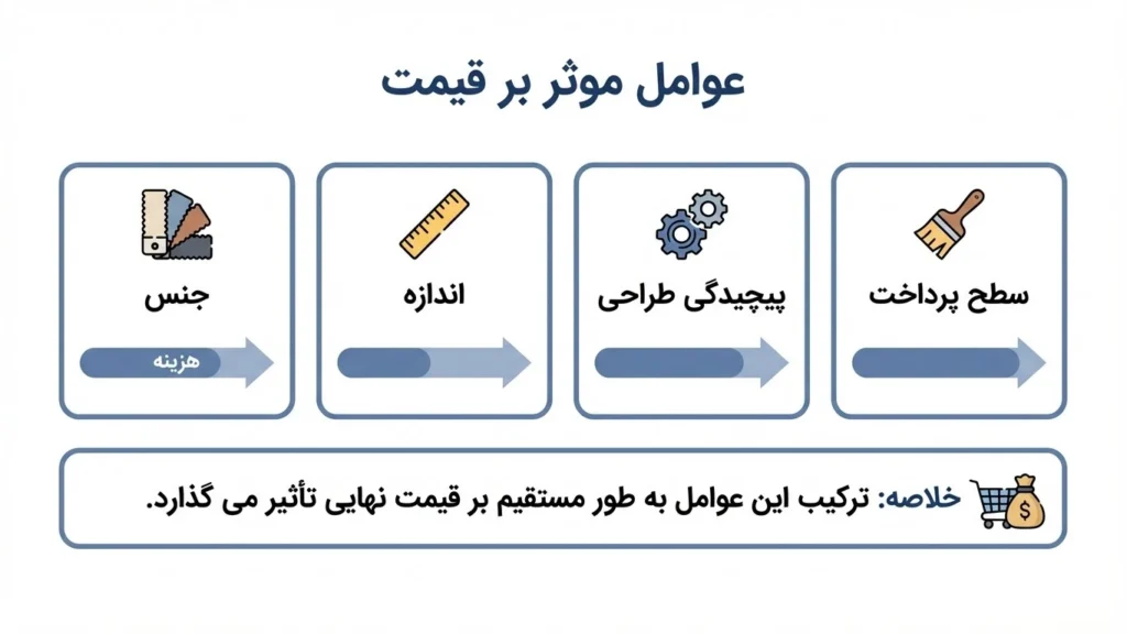 - نوع فرآوری: استفاده از پوششهای محافظتی تخصصی مانند لاک یا رزینهای ضد آب برای افزایش طول عمر چوب، اگرچه یک هزینه پنهان است، اما به ارزش نهایی و دوام محصول میافزاید.