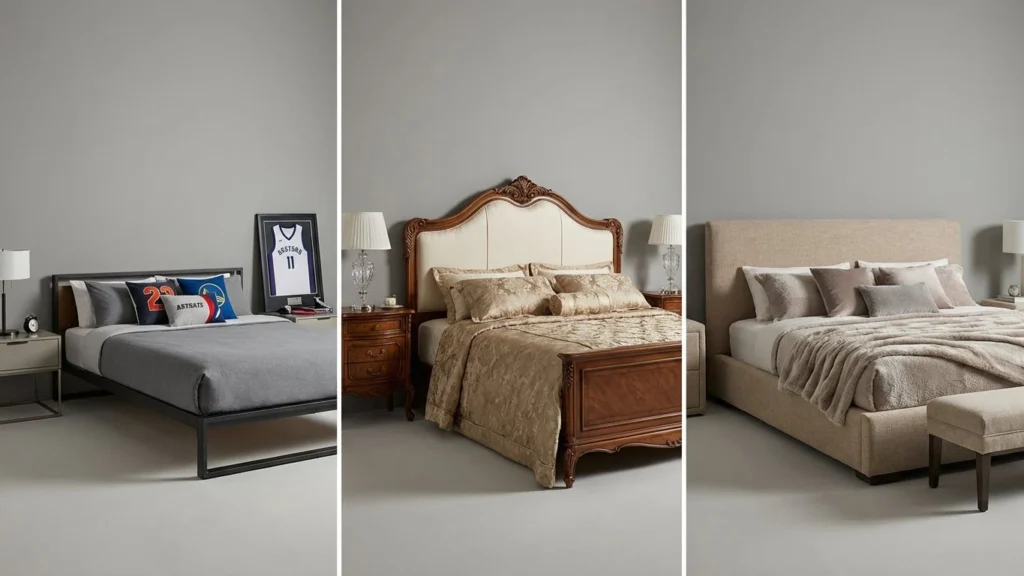 | کلاسیک و سلطنتی | جزئیات و تزئینات فراوان، منبتکاری ظریف، تاجهای بلند و مجلل، لمسهکاری | چوبهای گرانقیمت (گردو، راش)، پارچه باکیفیت | فضاهای لوکس و بزرگ (اتاقهای مستر) |