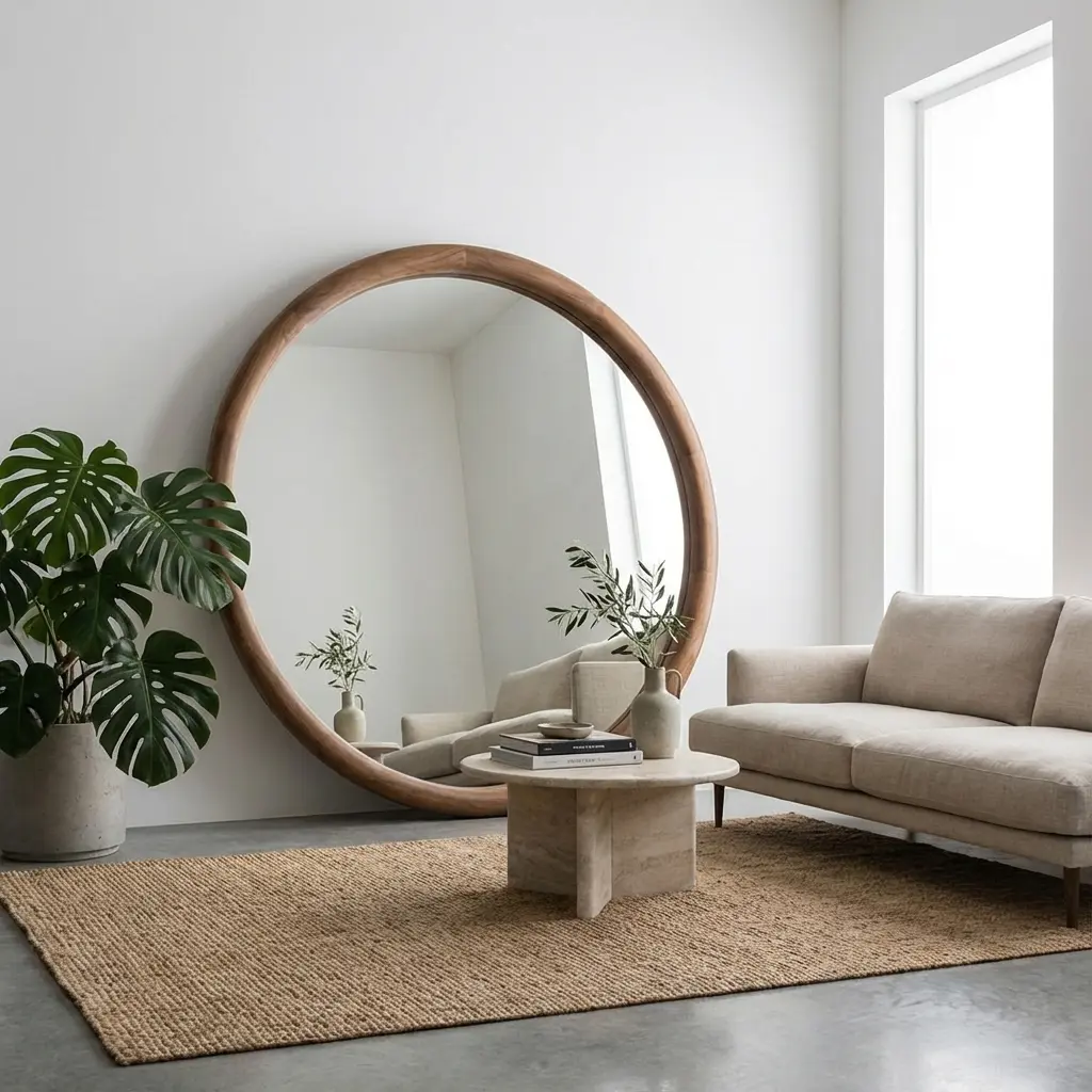 آینه چوبی قدی مینیمال گرد