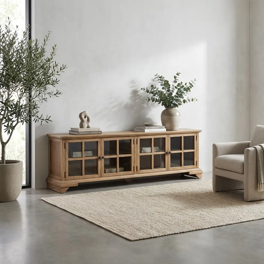 در خانههایی با دکوراسیون کلاسیک یا روستیک، میز تلویزیون آرشینا میتواند مرکز توجه باشد. ترکیب آن با فرشهای دستباف، مبلمان چوبی، و دیوارهایی با رنگهای گرم جلوهای متفاوت ایجاد میکند.