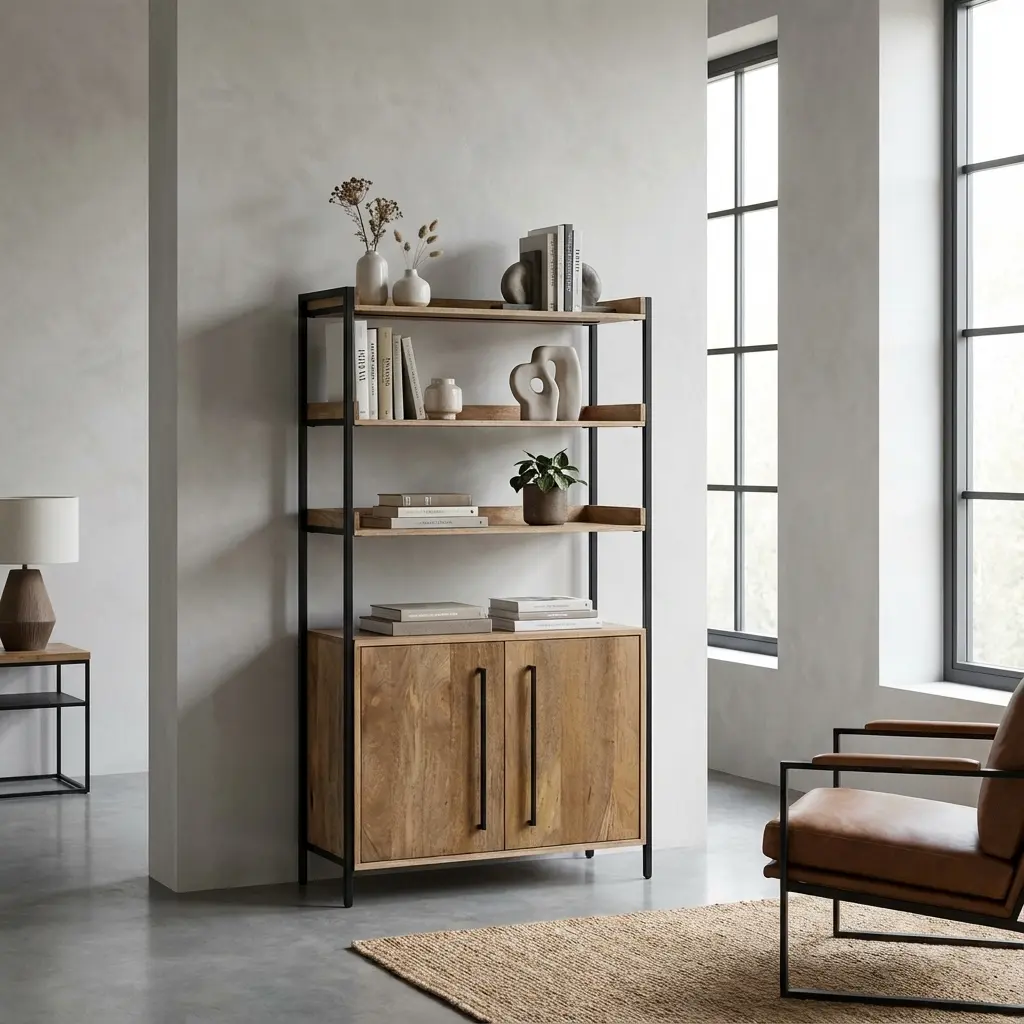 کمتر کسی را می توان پیدا کرد که از دیدن این کتابخانه چوبی ساده بسیار زیبا و مدرن لذت نبرد . کتابخانه روستیک چوبی و فلزی ، از ترکیب متریال چوب طبیعی و فلز رنگ کاری شده مشکی مات ، ساخته شده است .رنگ این پایه ها کوره ای بوده و بیشترین مقاومت در برابر ضربه و رطوبت را دارند .