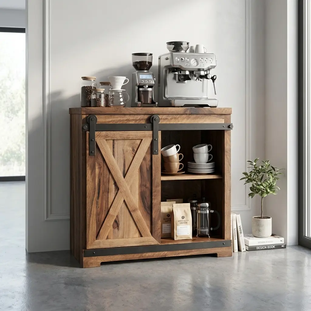 کافی بار روستیک چوبی با درب کشویی خاص، می تواند انتخاب عالی برای افرادی باشد که به دنبال انتخاب المانی خاص و منحصر به فرد برای خانه خود هستند. اگر از آن دسته افرادید که دوست دارید در انتخاب وسایل خود پیشرو باشید و وسایلی را برای دکوراسیون خود انتخاب کنید در هیچ خانه ای وجود ندارند، این کافی بار بهترین انتخاب برای شما است.