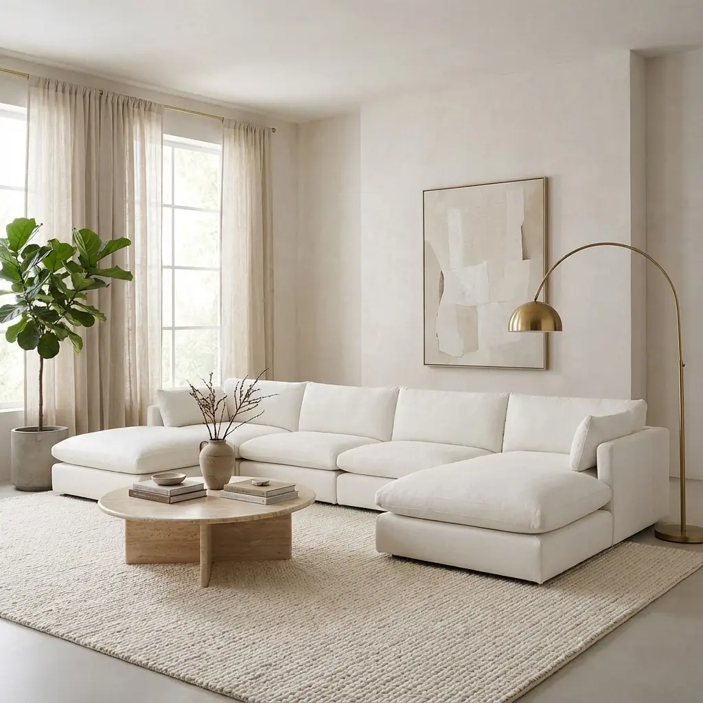 با توجه به ابعاد ۴۲۰ در ۱۷۰ سانتیمتری، راحتی یو مدل آتی برای سالنهای پذیرایی بزرگ، ویلاها و فضاهای “Open Plan” طراحی شده است. فرم U شکل این مبلمان باعث میشود تا فضایی مجزا و تعریف شده در دل سالن نشیمن ایجاد شود که تمرکز آن بر تعامل و گفتگو است. این محصول به راحتی با سبکهای دکوراسیون مدرن، روستیک (روستایی)، نئوکلاسیک و حتی مینیمال هماهنگ میشود.