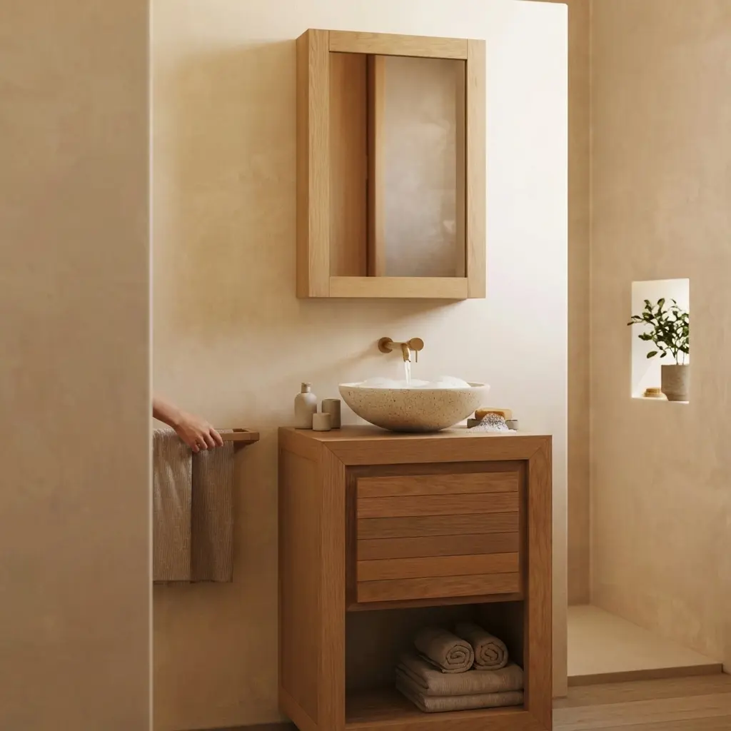 - فضای ذخیرهسازی: کابینت زیرین فضای مناسبی برای قرار دادن حوله، مواد شوینده و لوازم بهداشتی فراهم میکند تا محیط همیشه مرتب بماند.
