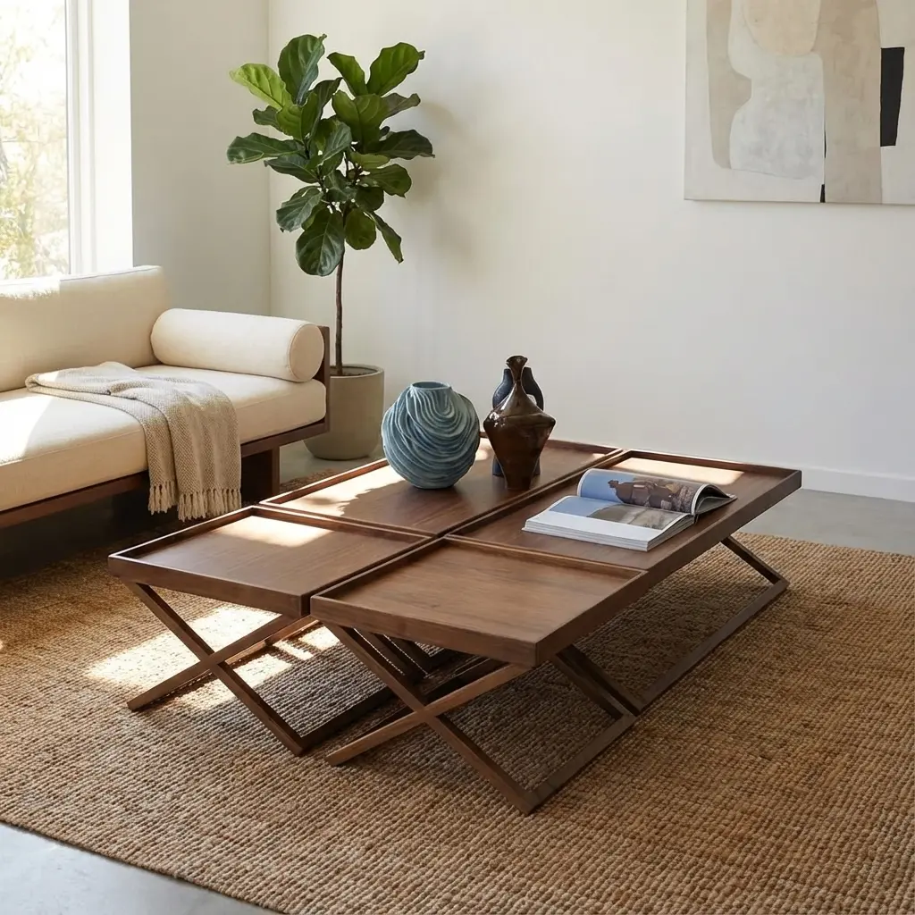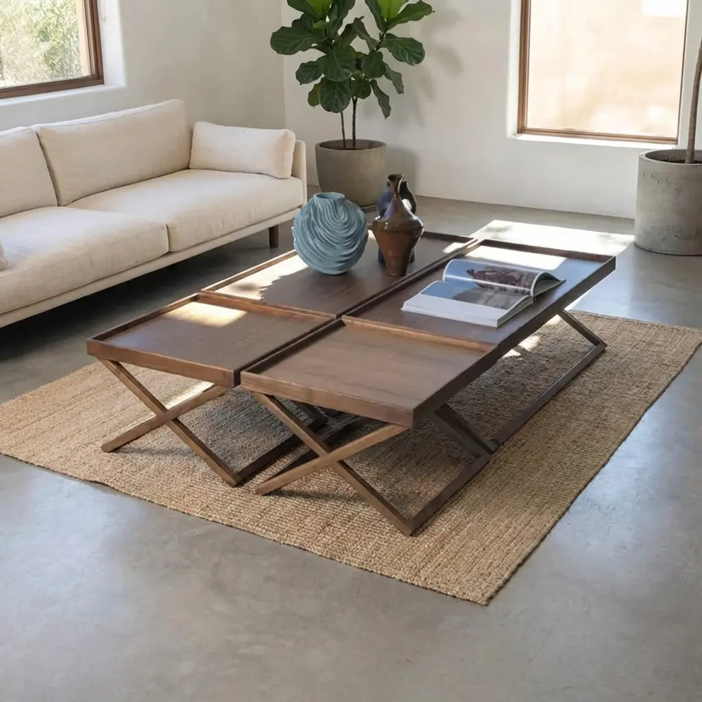 مهمترین ویژگی میز جلو مبلی و عسلی لوکا، ساختار ۴ تکه آن است. این ست شامل میزهایی با ابعاد متفاوت است که انعطافپذیری بالایی در چیدمان به شما میدهد. ابعاد میزهای جلو مبلی ۴۰ در ۸۰ سانتیمتر و ابعاد عسلیها ۴۰ در ۴۰ سانتیمتر است. این تنوع در سایز به شما اجازه میدهد تا بسته به نیاز لحظهای، سطح میز را گسترش دهید یا آن را جمعوجورتر کنید.
