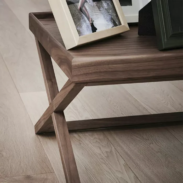 در ساخت میز جلو مبلی و عسلی لوکا، کیفیت و ماندگاری اولویت اصلی بوده است. این محصول از روکش چوب طبیعی گردو ساخته شده که به دلیل نقش و نگارهای طبیعی و رنگ گرم خود، یکی از محبوبترین متریالها در دکوراسیون داخلی است. ضخامت صفحه چوبی این میزها ۲ سانتیمتر در نظر گرفته شده که ظاهری ظریف و در عین حال مستحکم به آن بخشیده است.