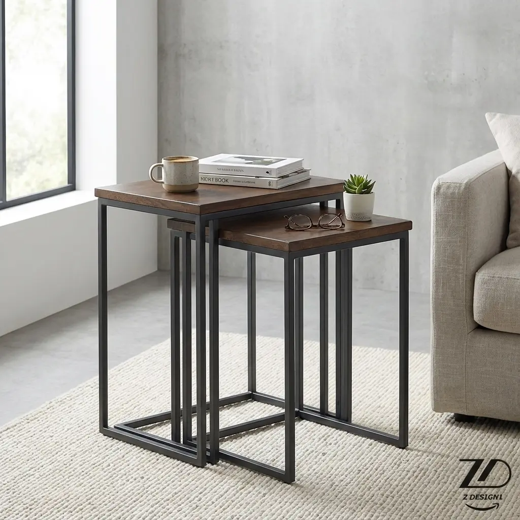 میز عسلی مدرن ترکیب زیبایی است از چوب و پروفیل فلزی بادوام و مستحکم که دارای پایه یک طرفه فلزی است. دارای این قابلیت است که در هم قرار گرفته و فضای کمتری را اشغال کند.