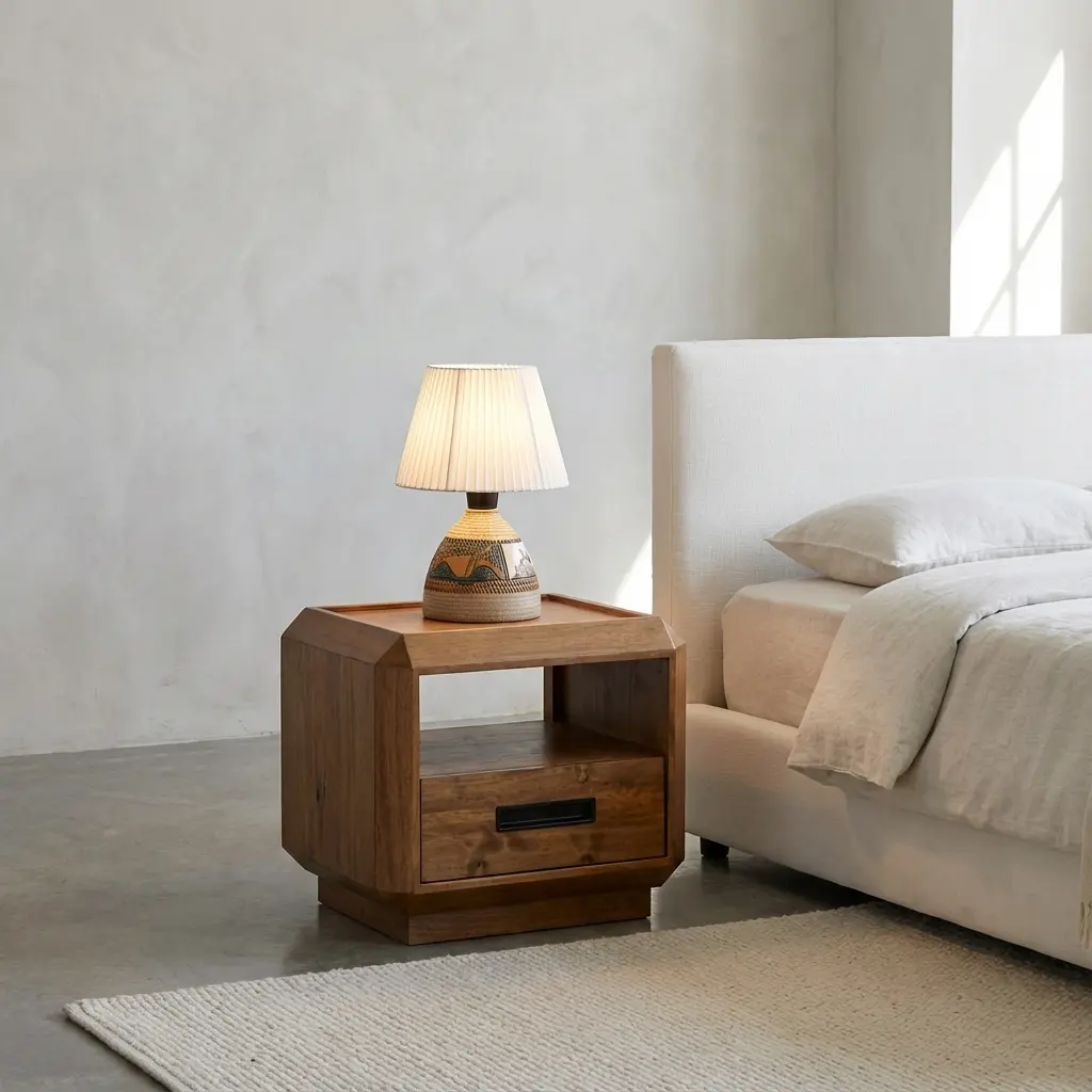 طراحی پاتختی چوبی جدید شیوا به گونهای است که به راحتی با سبکهای مختلف دکوراسیون داخلی هماهنگ میشود. اگر اتاق خواب شما دارای تم روستیک، بوهو یا حتی مدرن است، گرمای چوب طبیعی این محصول میتواند تعادل بصری خوبی در فضا ایجاد کند. ابعاد ۴۵ در ۴۵ سانتیمتری سطح آن، فضای کافی برای چیدمان لوازم ضروری کنار تخت را فراهم میکند، بدون اینکه فضای زیادی از اتاق را اشغال کند.