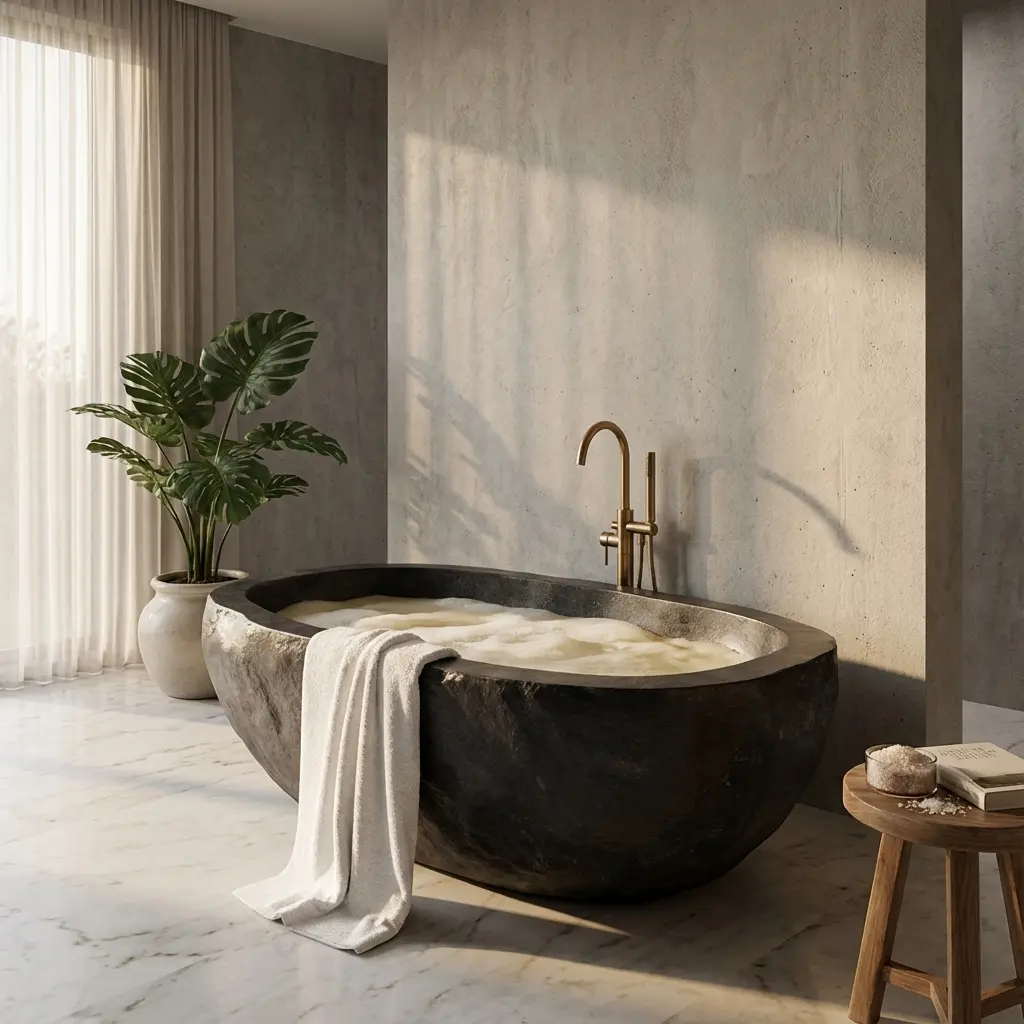 بدون شک وجود هر نوع وان در حمام بر زیبایی و لاکچری بودن سرویس بهداشتی شما می افزاید . حالا اگر وان حمام روستیک و از جنس سنگ طبیعی رودخانه ایی باشد ، قطعا این حس را چند برابر می کند . وان حمام در جنس های متنوع و قیمت های مختلفی در بازار موجود می باشند ، که بسته به فضای حمام تان و بودجه ی در نظر گرفته شده ، میتوانید انتخاب ایده آلی داشته باشید .