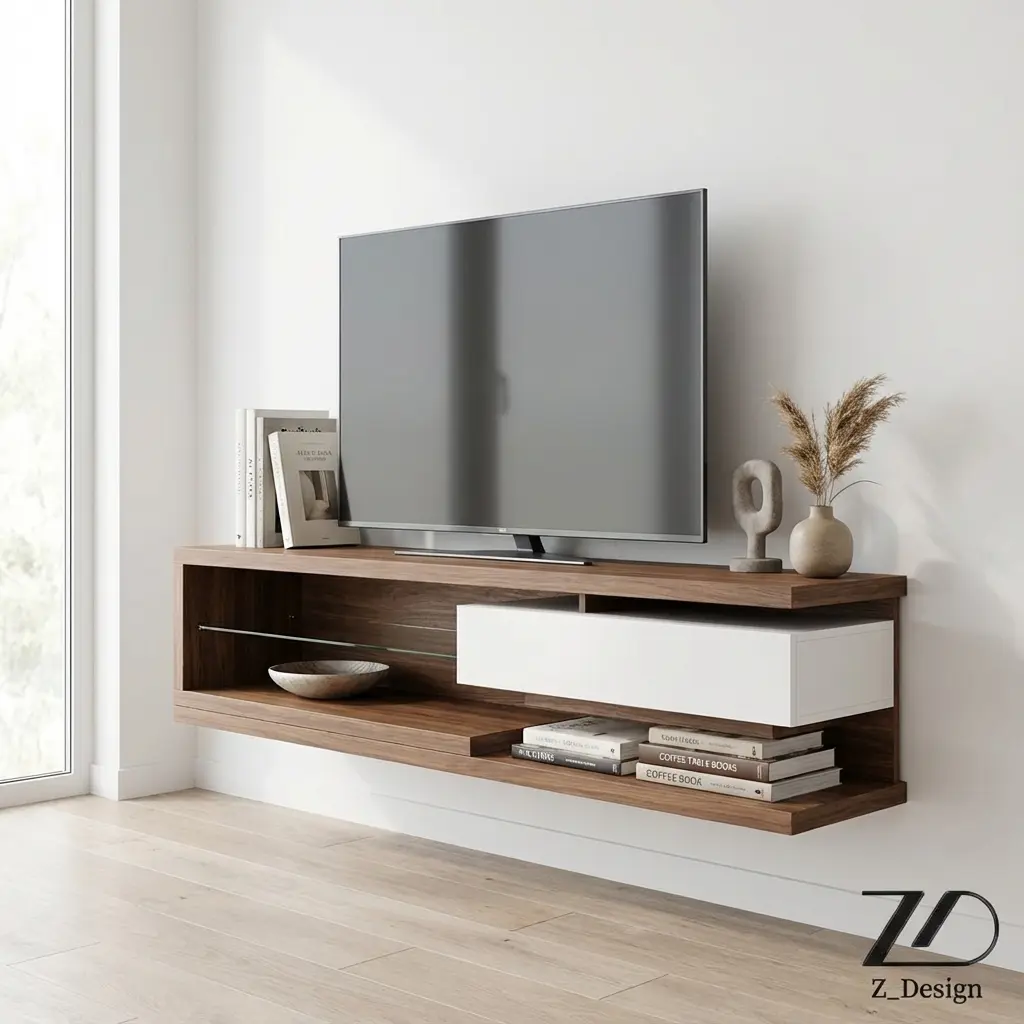 ایدههایی برای دکوراسیون با میز تلویزیون چوبی مدل وایت