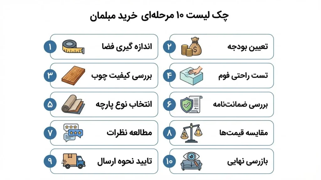 چک لیست ۱۰ مرحلهای خرید مبل از یافت آباد